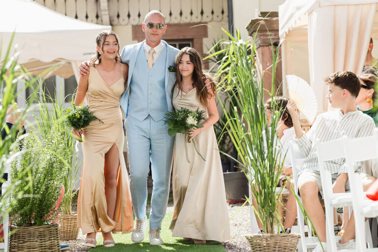 Le mariage au Château Burrus a été une véritable aventure photographique, et j’ai eu la chance de travailler avec deux talentueux seconds photographes (Eric Seywert et Leila Kachouri) pour capturer chaque instant de cette journée unique. Dès notre arrivée, nous avons pris le temps d’explorer ce cadre exceptionnel, en repérant les meilleurs angles et les jeux de lumière dans ce magnifique château et ses jardins verdoyants. En tant qu’équipe, nous nous sommes répartis les tâches pour ne rien manquer : les préparatifs, les moments d’émotion, et les éclats de rire partagés tout au long de la cérémonie et de la réception.